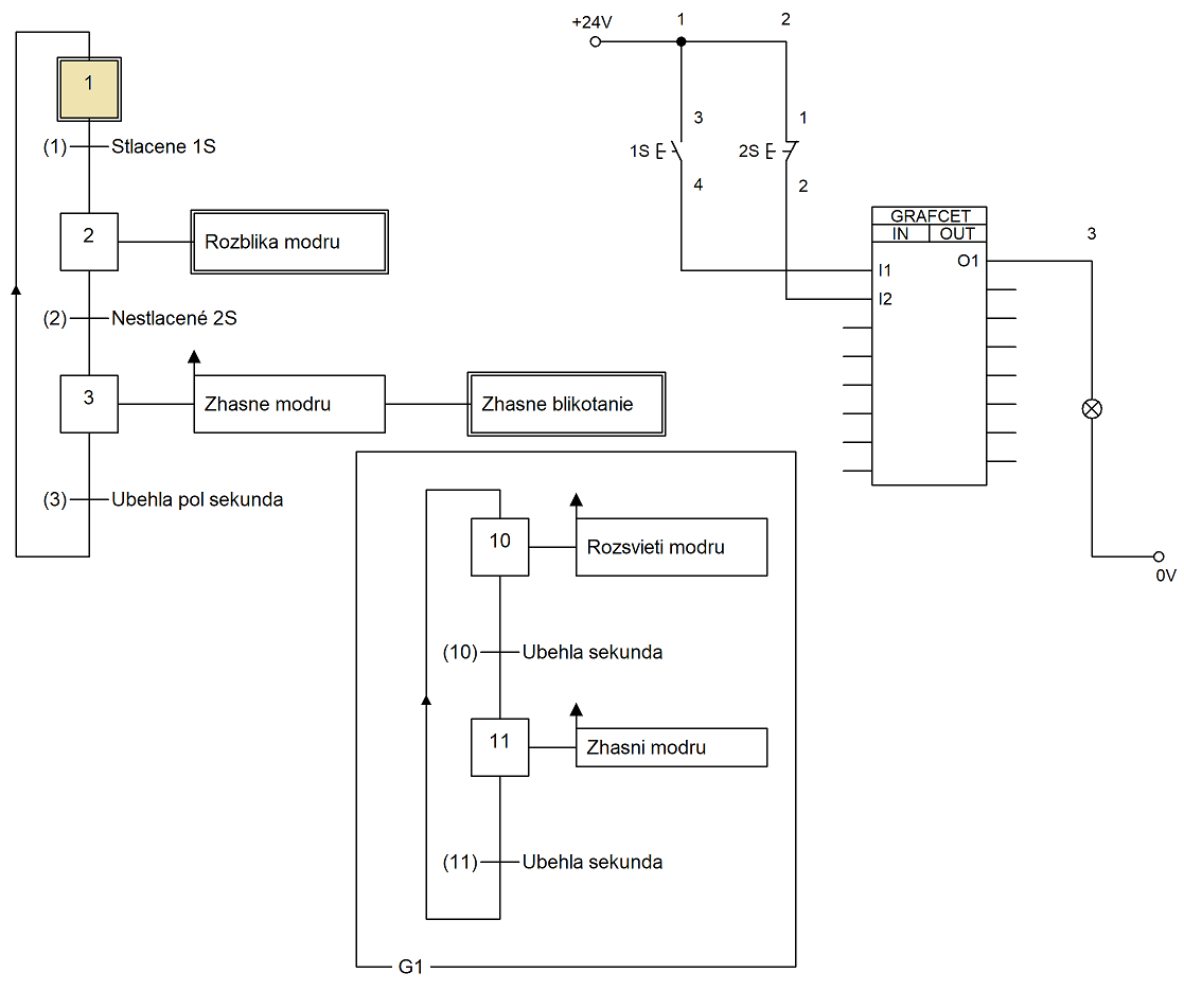 Schéma zapojenia a funkčná bloková schéma boli vytvorené v programe FluidSIM |