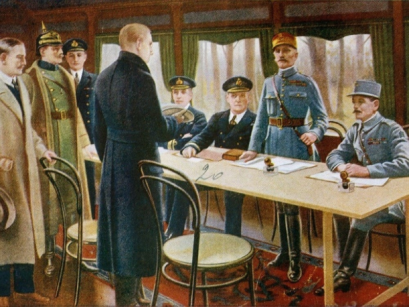 Roku 1917 v Rusku prevzali moc boľševici a uzavreli mier s Nemeckom. Nemci potom stiahli svoje jednotky z východného frontu a v marci 1918 ich vrhli do masívneho útoku proti Francúzsku. Americké jednotky pomohli tento útok zastaviť. Bulharsko, Turecko a Rakúsko-Uhorsko sa však nachádzali na pokraji zrútenia a Nemecko súhlasilo s prímerím. K jeho podpísaniu došlo 11. novembra 1918.